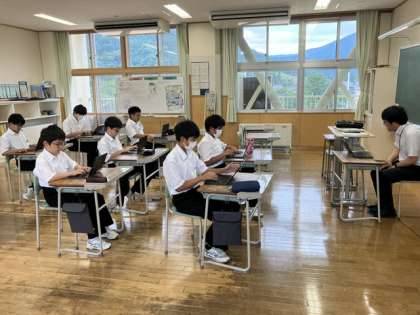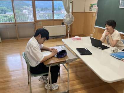 1年生は、楡の木タイムで1学期を振り返ってのアンケートをしていました。
