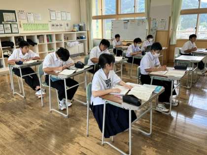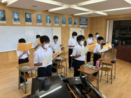 3時間目の授業の様子 公開日 2023/07/19 更新日 2023/07/19 日々の活動から 1年生は、音楽で「やさしさに包まれたなら」を歌っていました。 2年生は、国語で「専門用語を使えるようになろう」という内容の授業でした。 3年生は、英語で「記事に対して自分の考えを述べよう」という内容の授業でした。