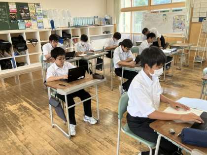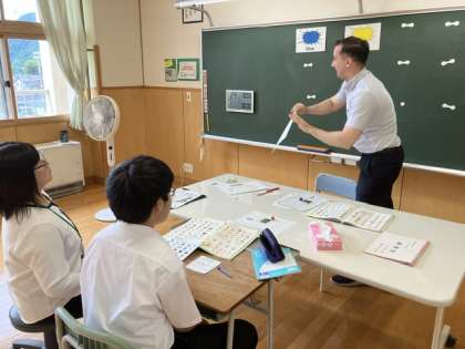 2時間目の授業の様子 1 公開日 2023/07/20 更新日 2023/07/20 日々の活動から 1年生は、学級活動で夏休みの課題の確認をしていました。 碧空級は、英語でALTの先生と英語のすごろくをしていました。