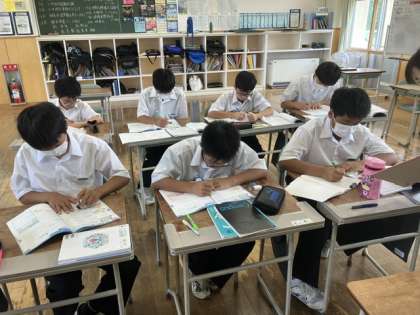 1年生は、数学でこれまでの復習をしていました。 碧空級は、自立活動で集会の準備をしていました。