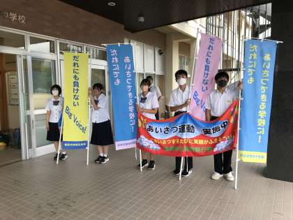 7月20日(木) 公開日 2023/07/20 更新日 2023/07/20 日々の活動から 今日は生徒会による挨拶運動の日でした。生徒会執行部とソフトボール部のメンバーで朝の挨拶を呼びかけました。すがすがしい朝の始まりになりました。