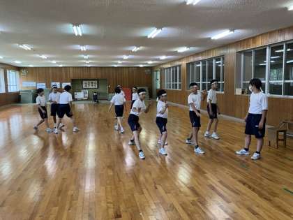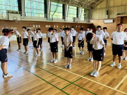 午後の授業の様子 2 公開日 2023/07/20 更新日 2023/07/20 日々の活動から 白虎団の練習の様子です。 最後の全体会の様子です。本日も違反がなかったため加点がありました。 明日も団別練習があります。体操服やハチマキを忘れず持ってきましょう。