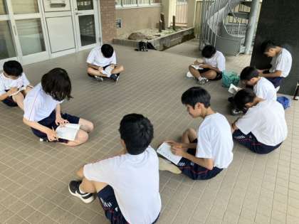 陸上競技部は、振り返りのノートを書いていました。 ソフトボール部は、トスバッティングをしていました。