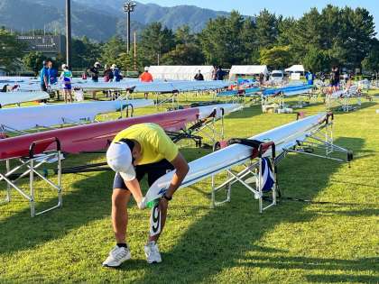今日の午前中ですべてのレースが終わるので、体力を消耗しないように気をつけながらアップをしています。