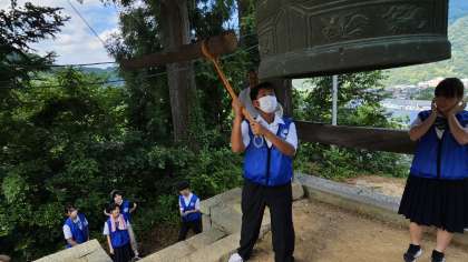 鐘を鳴らしている続きです。 そして、全員で集合写真です。