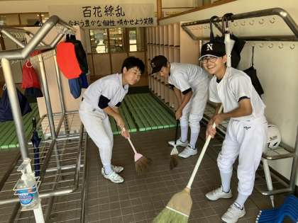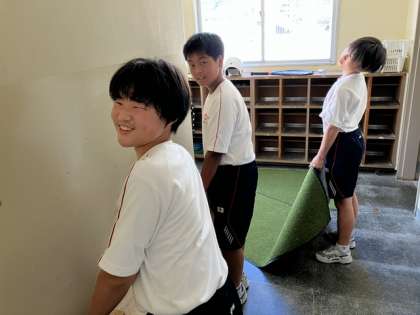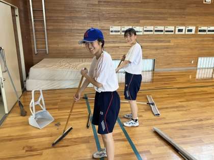 陸上競技部は、体育館のトイレを笑顔できれいにしてくれました。