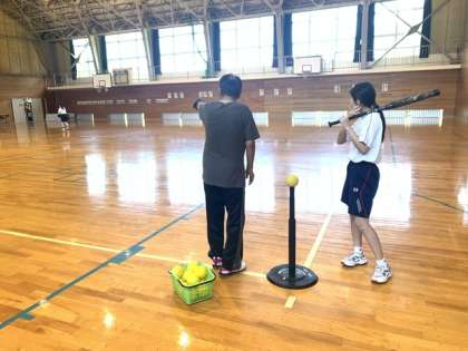 本日も体育館での活動でした。バッティングティーを使ってボールを打つ位置を確認しました。