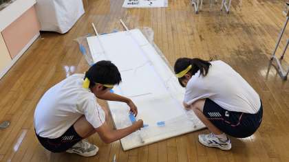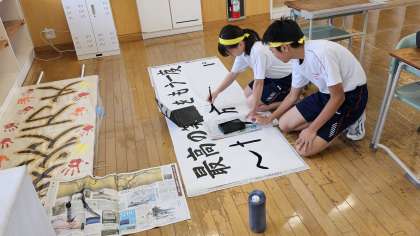 体育大会リーダー研修会2 公開日 2023/08/02 更新日 2023/08/02 日々の活動から 実行委員会は、大会テーマを書いています。 上手に丁寧に書いています。 その後、フィルムをきれいに剥がしています。