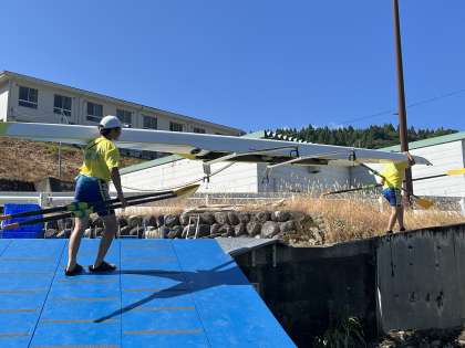ボート部 公開日 2023/08/21 更新日 2023/08/21 日々の活動から 8月21日(月) 今日のボート部は、漕艇場での練習でした。 今週もまだ暑い日が続くので、しっかり水分を取って練習していきましょう。