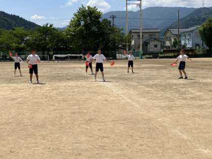 朱雀団の活動の様子 公開日 2023/08/21 更新日 2023/08/21 日々の活動から 始めは、音楽室でこれまでの動きの確認をしていました。 次に、グランドに出て、実際のポジションでやってみました。 明日は制服で実際にやってみることになっています。 本番までの仕上がりが楽しみですね。