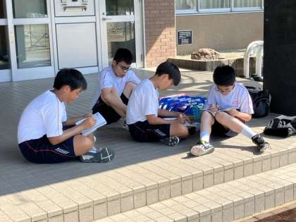 陸上競技部の活動の様子 公開日 2023/08/22 更新日 2023/08/22 日々の活動から 今日も、グランドはとても暑かったので、できるだけ日陰に入って活動しました。 100メートル走と200メートル走を2本ずつ走りました。 1回走るたびに、日陰に入って記録を書いてから、2本目を走りました。 明日と明後日は、小学生が部活動の体験に来ます。体調を整えてきてください。できれば帽子を持ってきてください。
