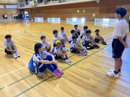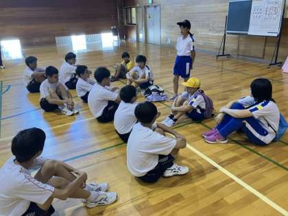 小学生部活動体験会 陸上競技部の様子 1 公開日 2023/08/23 更新日 2023/08/23 日々の活動から 部長の号令で始まりました。 はじめに、小学生が自己紹介をしました。 名前とどうして陸上競技部を選んだのか話してもらいました。 次に中学生も自己紹介をしました。