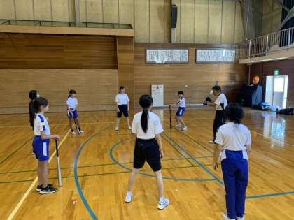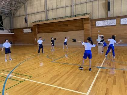 本日、小学校の部活動体験がありました。小学校5・6年生にソフトボールの楽しさを伝えていました。中学校では、ぜひ入部してほしいと思います。