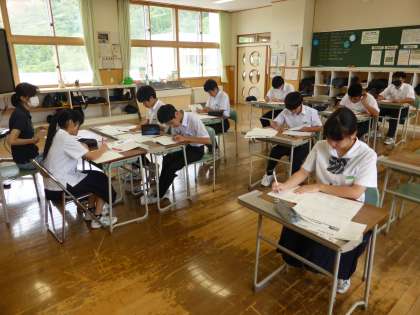 3時間目の授業の様子 公開日 2023/08/30 更新日 2023/08/30 日々の活動から 1年生は、国語の夏休み明けテストをしていました。 2年生は、数学でテストの見直しをしていました。 3年生は、社会で「人権を守るための権利」という内容の授業でした。