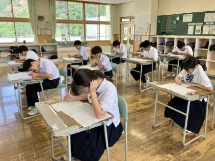 2年生は、国語の夏休み明けテストでした。 3年生は、社会で新しい人権について学んでいました。