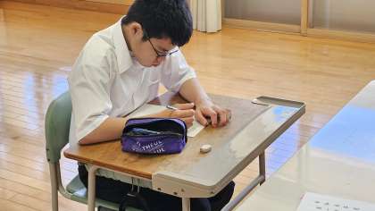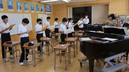 2年生は、音楽で合唱練習でした。 碧空級は、数学のテストをしていました。