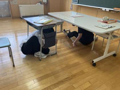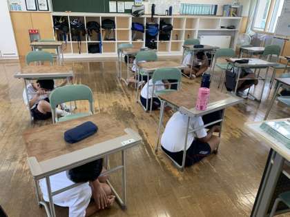 本日9月1日は防災の日です。本校でもシェイクアウト富山に参加し、地震が起こった時に「姿勢を低く」「頭を守って」「揺れが収まるまでじっと待つ」を実践しました。災害が起こった時に実践できるよう覚えておきましょう。