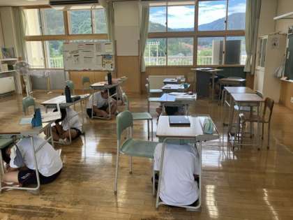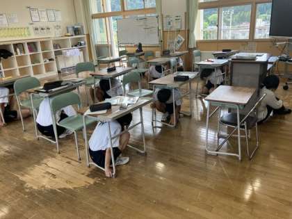 シェイクアウト訓練 2 公開日 2023/09/01 更新日 2023/09/01 日々の活動から 全員上手に机の下に身を隠すことができていました。 万一の時は、自分の身を守ることを優先に考えてください。