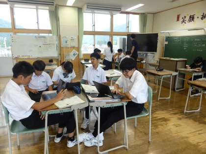 1時間目の授業の様子 2 公開日 2023/09/04 更新日 2023/09/04 日々の活動から 2年生は、楡の木タイムで校外学習の見学地を調べていました。 3年生は、社会で「三権分立と憲法改正」という内容の授業でした。