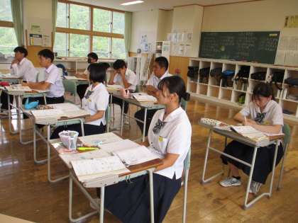 4時間目の授業の様子 公開日 2023/09/05 更新日 2023/09/05 日々の活動から 1年生は、楡の木タイムで個人課題について調べ学習をしていました。 2年生は、数学で「1次関数」という内容の授業でした。 3年生は、理科でDNAの学習をしていました。