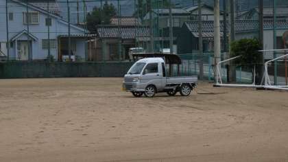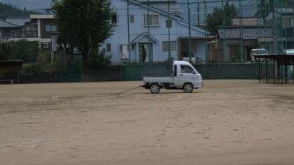 昨日の雨の影響でグラウンドコンディションがよくなかったので、整備してもらいました。