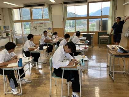 2年生は、数学で1次関数の変化の割合の求め方を学んでいました。