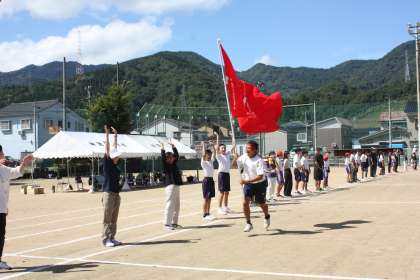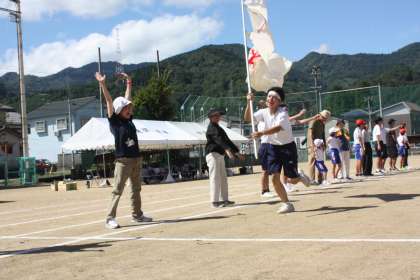 第7回小中合同体育大会 神通峡ウェーブ 公開日 2023/09/09 更新日 2023/09/09 日々の活動から 綱引き後、実行委員の呼びかけで児童・生徒・保護者・地域の皆様が円になって、並んでウェーブをしました。団役員が例を見せ、応援団長が全力疾走をしました!