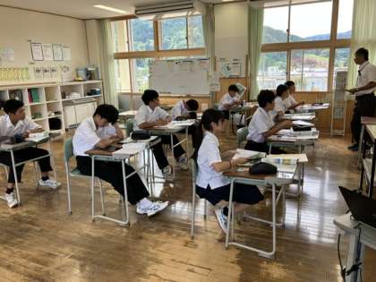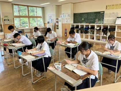2時間目の授業の様子 2 公開日 2023/09/12 更新日 2023/09/12 日々の活動から 2年生は、理科で「光合成と二酸化炭素について考えよう」という内容の授業でした。 3年生は、英語でリスニングをしていました。