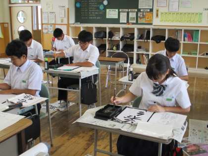 2年生は、国語で書道でした。 3年生は、社会でした。