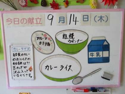 給食メニューと放送室 公開日 2023/09/14 更新日 2023/09/14 日々の活動から 給食メニューです。 ごはん 牛乳 カレーライス あらびきウインナー フルーツカクテル 放送当番の様子です。