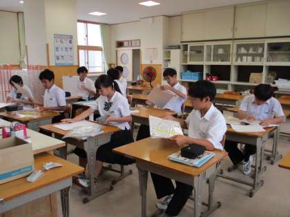 6時間目の授業の様子 公開日 2023/09/14 更新日 2023/09/14 日々の活動から 1年生は、保健体育でバスケットボールのドリブルとシュートの練習をしていました。 2年生は、美術でした。 3年生は、英語でした。