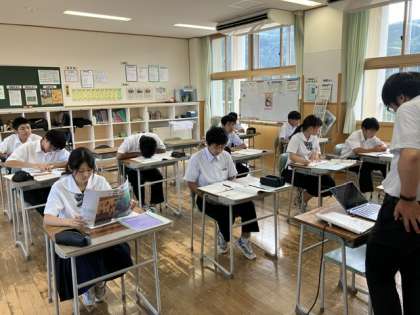 2年生は、英語で「メールなどのやりとリで便利な表現を整理しよう」という内容の授業でした。