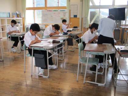 6時間目の授業の様子 公開日 2023/09/20 更新日 2023/09/20 日々の活動から 1年生は、数学で1学期に行ったテストの再テストをしていました。 2年生は、教育実習生の道徳で「私は十四歳」という内容の授業でした。 3年生は、社会で「国会」という内容の授業でした。