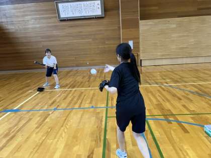 ソフトボール部は、素振りをしてからバントを打ち分ける練習をしていました。