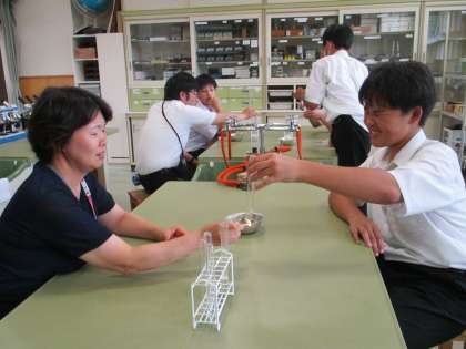 1年生は、理科で水素の特性を調べる実験をしていました。 2・3年生は、音楽で合同音楽でした。