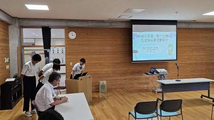 生徒会執行部が生徒会の活動と部活動の説明をしました。
