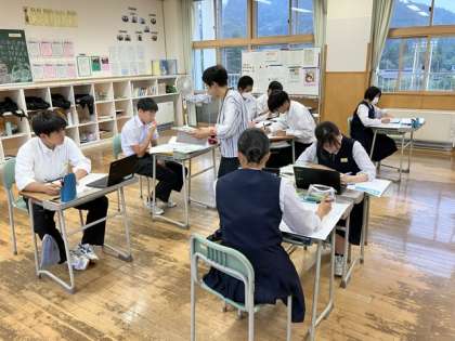 3年生は、国語で「小説を批判的に読み、考えたり分かったりしたことを、新聞の形式にまとめよう。」という内容の授業でした。