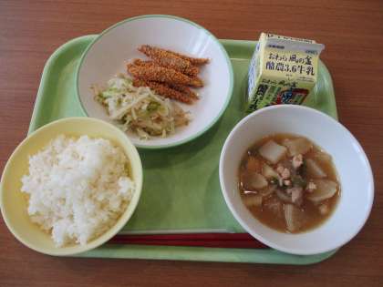 ごはん 牛乳 きびなごのさくさく揚げ 甘酢和え 大根と鶏肉の中華煮