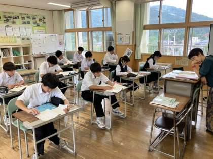 2年生は、国語で盆土産を読んでいました。 3年生は、社会で裁判について学んでいました。