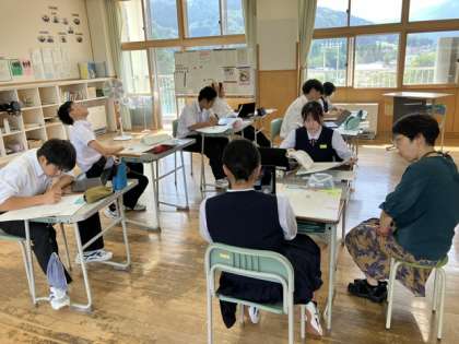 3年生は、国語で「学習課題をもとに作品を批評し、新聞の形でまとめよう。」という内容の授業でした。