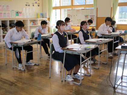 2年生は、国語でした。 3年生は、数学で中点連結定理について学んでいました。