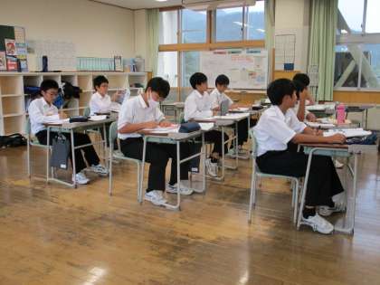 3時間目の授業の様子 公開日 2023/10/05 更新日 2023/10/05 日々の活動から 1年A組は、理科で「物質が水にとける様子」という内容の授業でした。 碧空級は、英語でした。 3年生は、社会で模擬裁判をしていました。