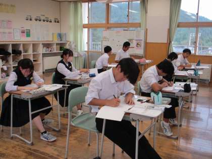 1年生は、美術で色塗りをしていました。 3年生は、英語でした。