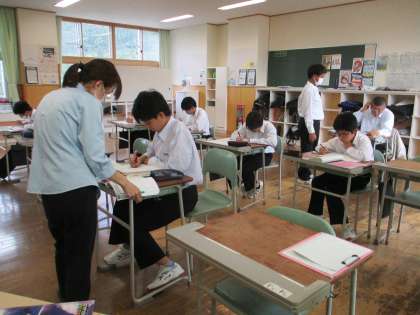 1年A組は、数学で1時間目テストの見直しをしていました。 碧空級は、数学でした。
