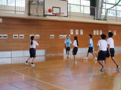 2年生は、保健体育でバスケットボールのゲームをしていました。