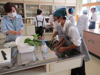 1年生は、家庭科で初めての調理実習でした。