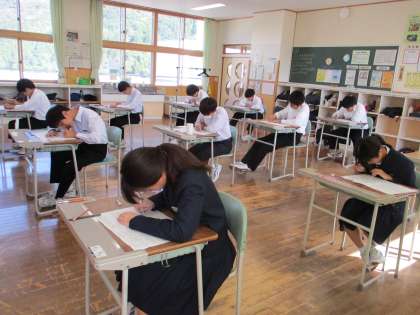 2年生は、数学の中間考査に取り組んでいました。 3年生は、英語の中間考査に取り組んでいました。