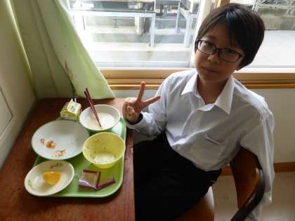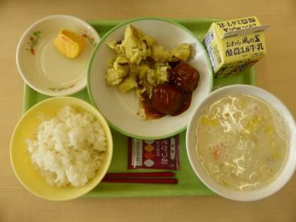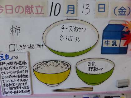 給食メニューと放送室 公開日 2023/10/13 更新日 2023/10/13 日々の活動から 給食メニューです。 ごはん 牛乳 ミートボール チーズおさつ 豆乳野菜スープ 柿 しそかつおふりかけ 放送当番の様子です。