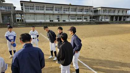 野球部引退試合1 公開日 2023/10/14 更新日 2023/10/14 日々の活動から 今日は藤ノ木中にて、5校合同引退試合をしました。 本校生徒が、卒業生チームのキャプテンをつとめました。 試合を楽しんでいます。