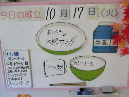 本日の給食 公開日 2023/10/17 更新日 2023/10/17 日々の活動から 10月17日(火) 本日の給食メニューです。 今日は、ソフト麺がでました。カレーソースがほどよい辛さでとてもおいしかったです。